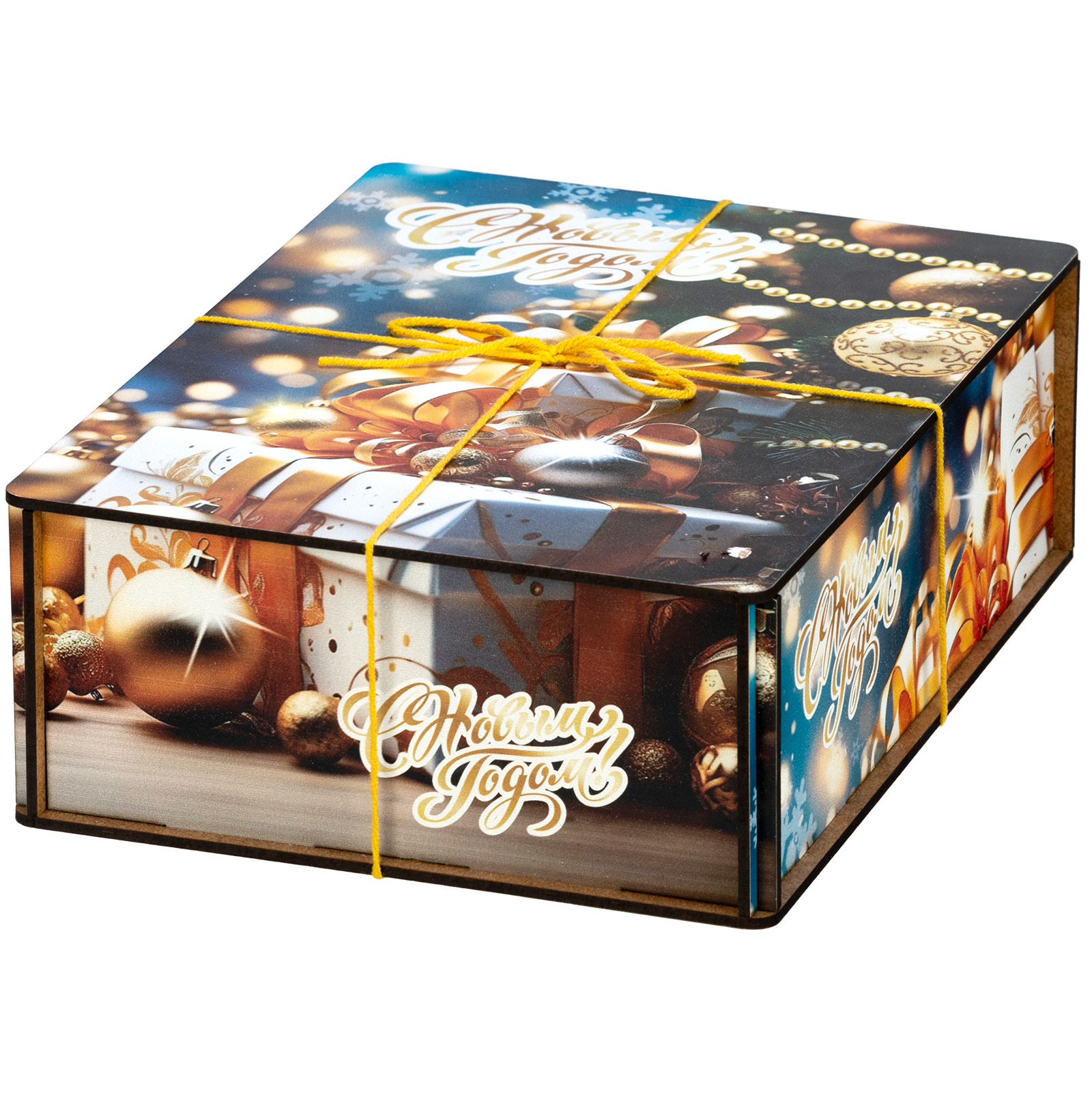 • Эксклюзивное оформление. Сладкий набор для взрослых может быть упакован в картонную или металлическую тару, но самым изящным вариантом является дерево. Экологичные коробки, сундуки, ларцы с резными узорами смотрятся презентабельно и понравятся как мужчинам, так и женщинам. Изображения Деда Мороза, символа 2026 года Лошади подчеркнут торжественность обстановки.